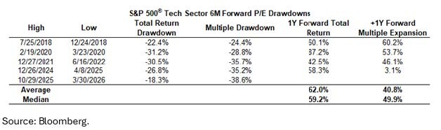 Today, tech (as a whole) looks similar to broader market multiples. You just have much faster earnings growth than certain other sectors.